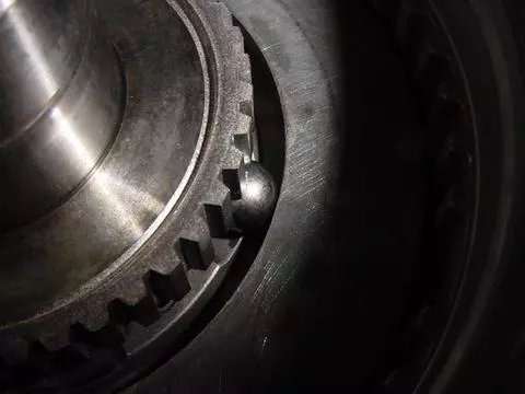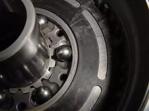 The picture below is the ball moved over to the position it was in when it fell away from the ramp and jammed the unit in full lock. When the balls end up in this position the clutches are locked and you will have issues when turning the vehicle in tight spaces, will bring up AWD codes, and can break the output shaft.
