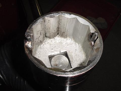 Making a simple tool for the removal of the cap makes life a lot easier. What I did was take a cheap large socket and weld pins to it that fit the holes in the plate. Picture below: