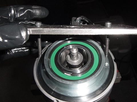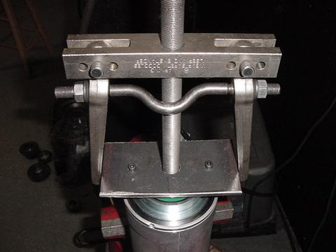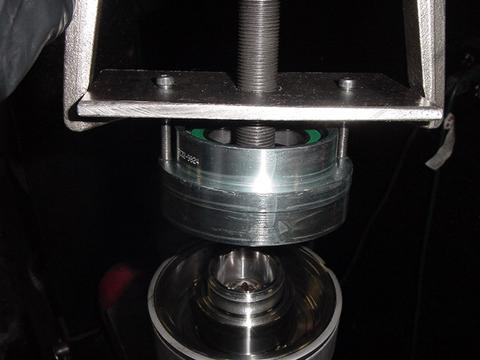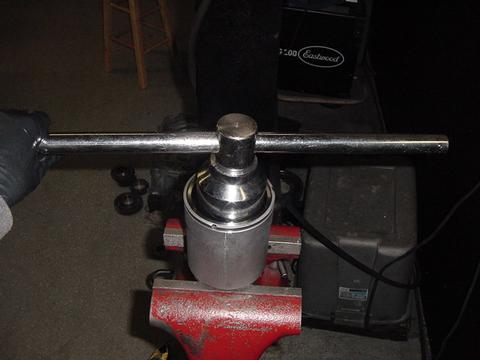 This tool has 2 purposes. It can be used to check torque values, but is also used as a pressure point for removing the coil via a puller. What we do is install the shaft into the assembly and let it drop to the bottom. I then take the puller and install it as you see in the picture below. Note I also made a special plate so I can pull the coil off: