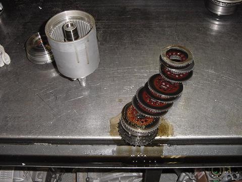 Helpful tip. To verify clutches are good, take all 9 frictions and steels and line then up together. Measure the total thickness. If it's 35-36mm, they are in great shape. Less than 35 and you have wear: