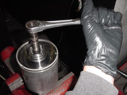 You can now take the unit off the vise, turn it upside down and drain all fluids and remove all parts. Please note there are 6 balls in there, don't lose them.