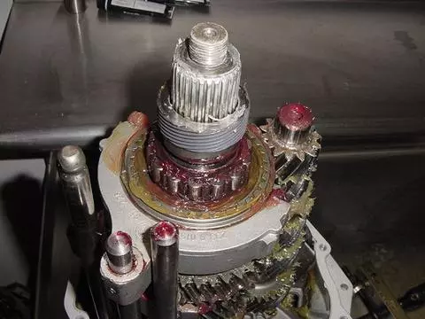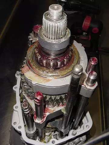 The pictures below are of a unit we took apart which was shipped to us by a customer who just had the unit rebuilt, but was not very confident, or happy, with the work. The customer claims the trans was at the builder for 7 months. He never installed the unit and shipped it directly to us. When we took the end cover off, it looked like someone smeared grease all over everything. There was so much grease, and Loctite, that it was a nightmare to take apart: