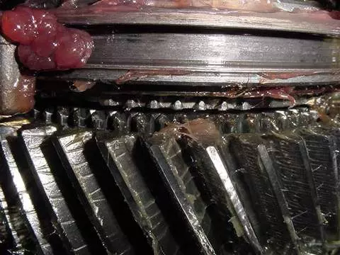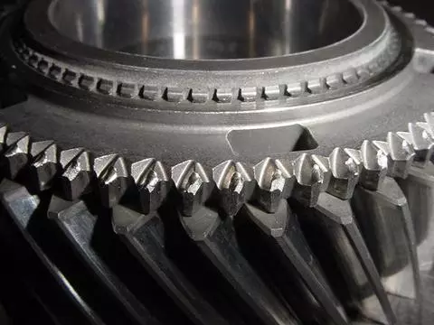 The engagement teeth on the gear were also badly damaged. Reusing a gear with damaged engagement teeth will give the driver notchy shifting and can cause the shifter to pop out of gear. Picture of the 3rd gear below: