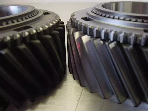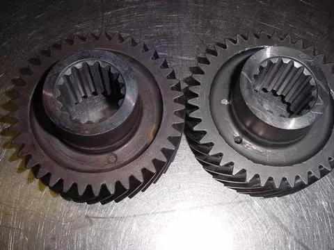 Healthy engagement teeth are also overlooked by others, but is a critical piece to replace if it is not healthy. Below is a picture of a worn gear on the left and new on the right. It is terribly important for the teeth to have a sharp point to them for a quality shift. If they are ground down, like the gear on the left, it won't work correctly:
